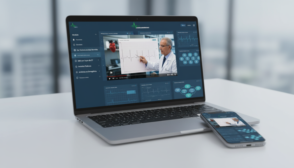 Aprenda a pensar, interpretar ECGs e decidir com segurança na sala vermelha, com quem vive a cardiologia de emergência há mais de 22 anos.